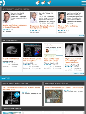 The interactive content on Univadis is to the point and delivered by faculty from top medical institutions. In minutes, you can brush up on key topics, ask questions of experts, and test your knowledge within an active community of professionals facing the same challenges you do.