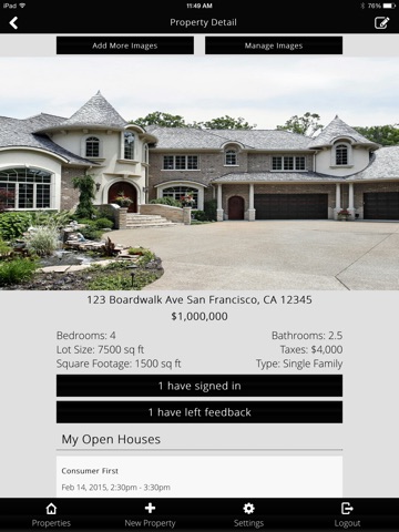 - Ability to manage your properties, Open Houses, and sign ins from our website