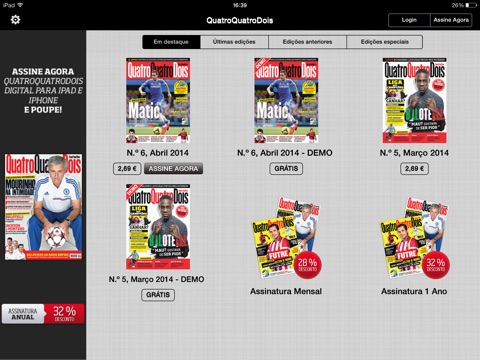 A revista QuatroQuatroDois oferece-lhe a possibilidade de efetuar uma assinatura anual, usufruindo de um desconto substancial em relação ao preço de cada edição individual. As assinaturas são automaticamente renovadas. Caso deseje cancelar a sua assinatura, deverá aceder à sua conta e desligar a opção “Renovação Automática”, pelo menos 24 horas antes do prazo final da assinatura.