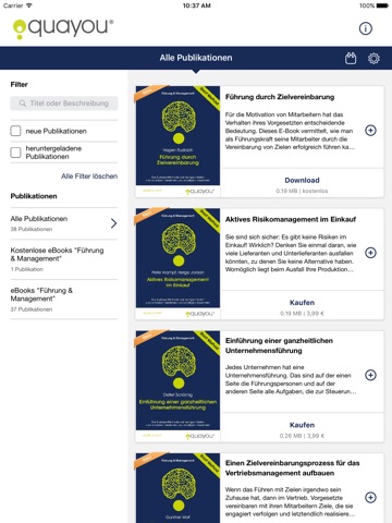 Lesen Sie die quayou eBooks aus dem Bereich Führung & Management direkt auf Ihrem Smartphone oder Tablet. Laden Sie die App kostenfrei herunter, um in der Bibliothek zu stöbern. Sie zahlen nur für die eBooks, die Sie wirklich lesen.