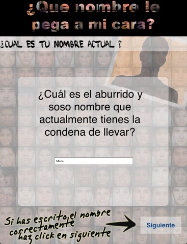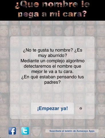 Mediante un complicado y sofisticado algoritmo, y un riguroso estudio, unido con tus datos físicos, analizaremos las características de tu cara para calcular un nombre concorde con tu fisionomía. Daremos con ese nombre con el que dirás: "Si, este tendría que ser mi nombre".