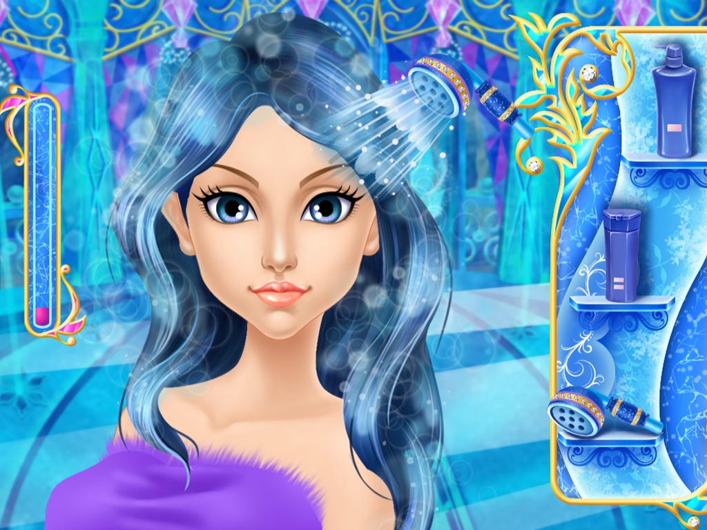 Oh, such a beautiful ice queen! Beautifully make-up, beautifully groomed and winsome smile. To me she is the most pretty queen in the world. Girls, do you like her? Do you want to know her beauty secret? Enjoy this girl games and find her secret. First, help her wash face. Use facial cleansers and acne needle to get rid of dust and acnes. Help her make a facial mask and then apply cream on her face. Second, wash her long hair with shampoo. And then use hair conditioner to revitalize her dry, lifeless hair. Thirdly, help her make up. At last, choose dresses, shoes, hairstyles for her making her more fashion.