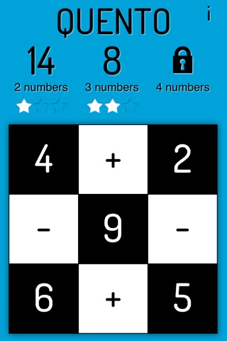 How does it work? Simple! Quento gives you the solution to a sum and youll have to do the math. To play, just swipe from a number to a + or - and to another number again. Stars are earned when the sum adds up to the challenge above and before you know it youve progressed a round!