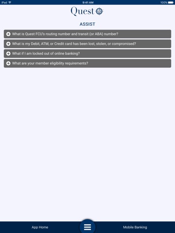 Quest Federal Credit Union Mobile provides members convenient access to our website, mobile check deposit, mobile banking, branch and contact information.