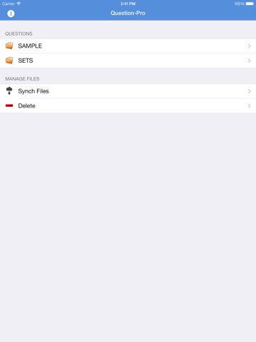 This app is a companion to the desktop software Question-Pro and/or Question-Writer. You must use this desktop software title in order to send questions to this app. THIS APP DOES NOT COME WITH QUESTIONS.