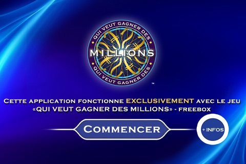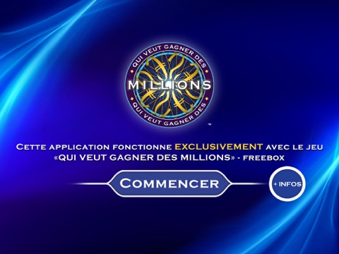 Cette application est uniquement compatible si vous avez acheté le jeu Qui Veut Gagner des Millions sur votre Freebox V6