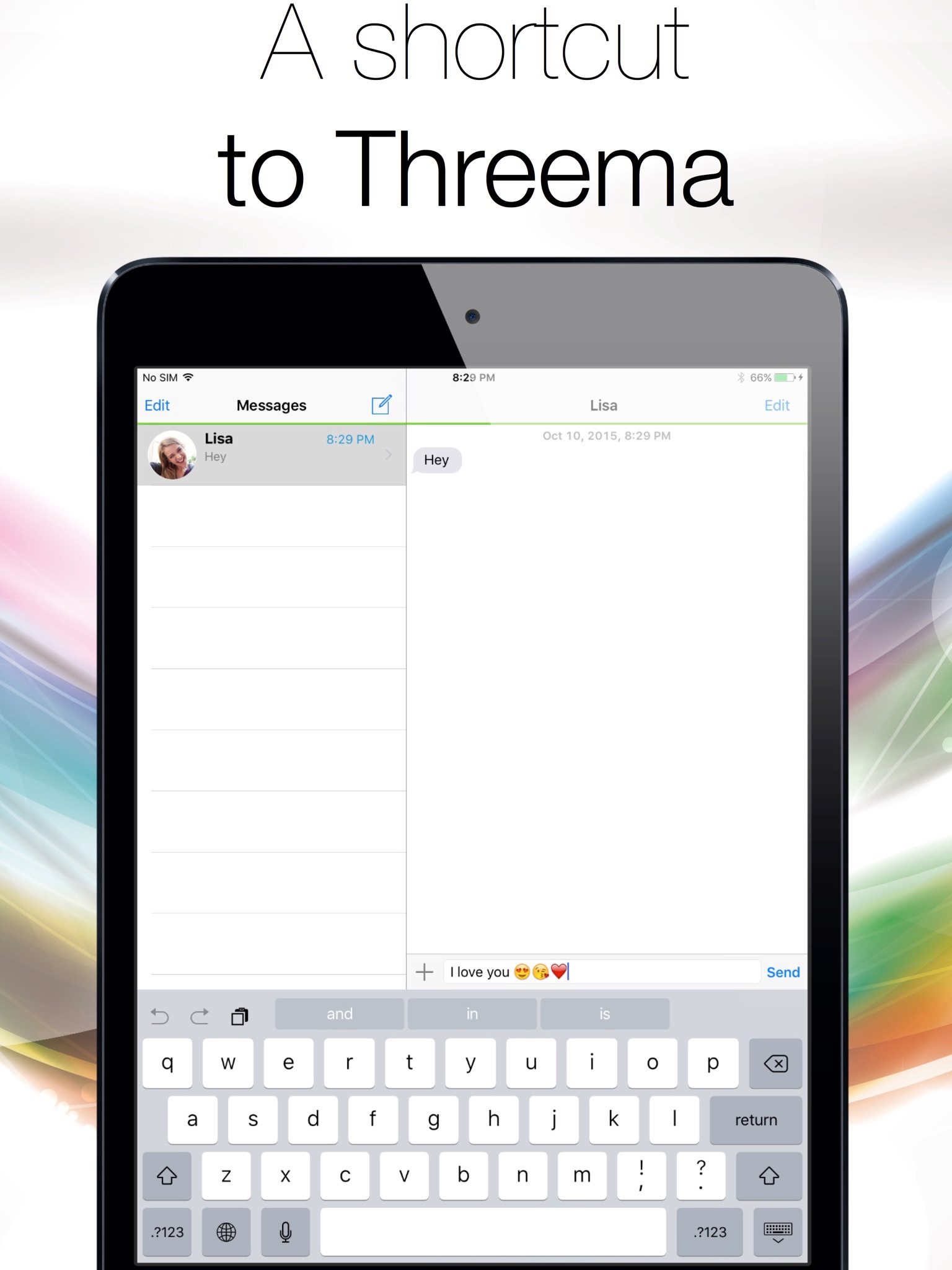 Starting your chats was never as fast! Start chatting right from your Homescreen! Quick Actions for Threena makes it easy to quickly send Threema messages and start chatting. See all of your favorites in the Notification Center at a glance.