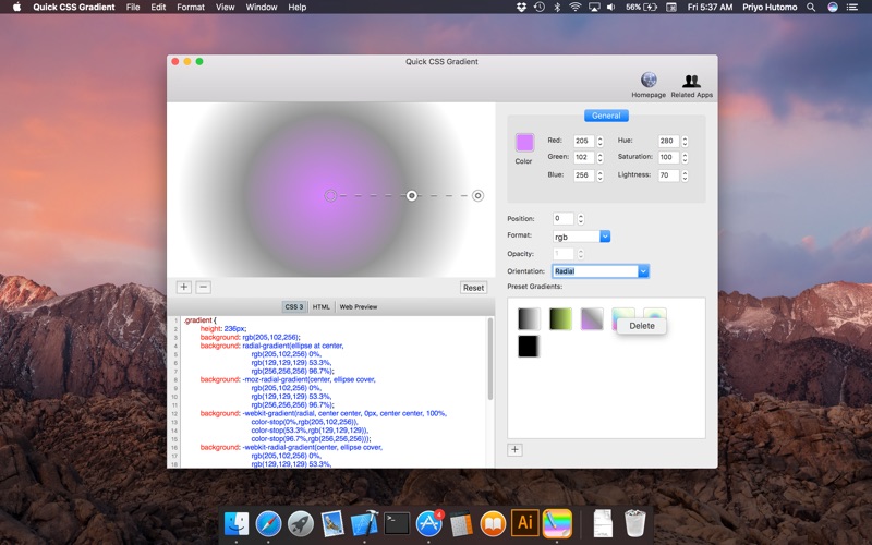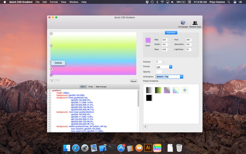 Finding the right formula for gradient color is quite a challenge. Using Quick CSS Gradient you can visually design a complex gradient with multiple color stops easily.