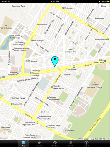 The nearby feature of this app enables you to find out several types of places that are around your current location .You can also search for any place and get road route directions to it.