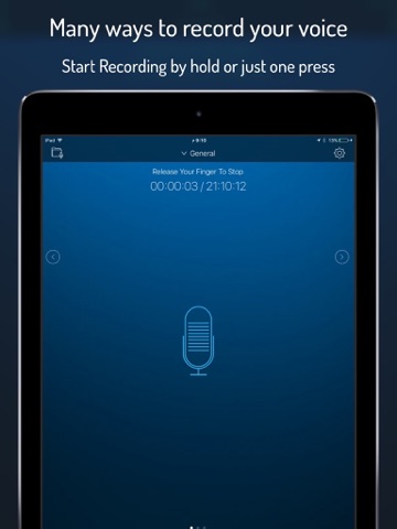 Easy to navigate and I liked two separate options of either recording continuously or record only portion while touching the record button. Great app. Would surely recommend to everyone in search of recorder app.