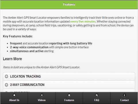 · Highlights of Key Features Unique to the Amber Alert GPS Smart Locator