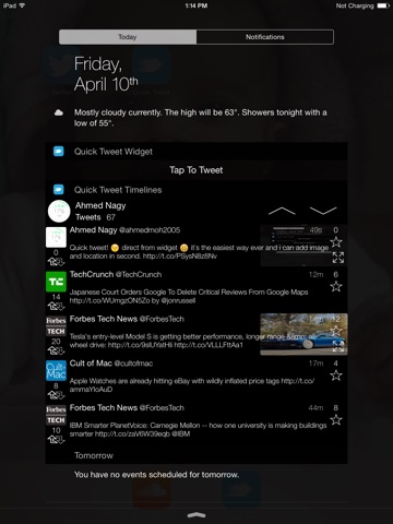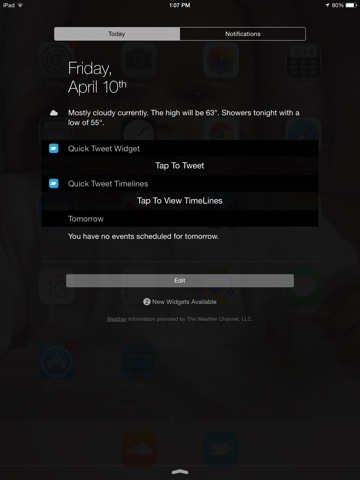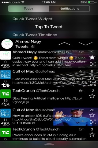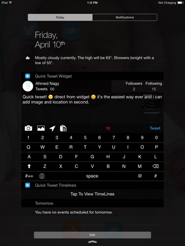 Quick Tweet is the first app in the Appstore that let you tweet and control your twitter timelines direct from widget without unlocking your device or closing your active app .