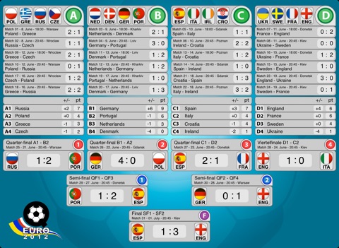 The EURO 2012 match schedule for your iPad, iPhone & iPod touch. All matches at a glance.