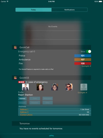 With this set of widgets and app, you will be able to save your profile and the one of your family members, and get displayed in your Today screen in case of emergency, even with a locked screen.