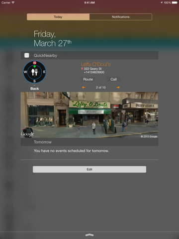 Get quickly a list of interesting places near you with this app. Quickgets Nearby has been optimized in order to be accessed especially fast, by using its Today widget and featuring Apple Watch extension.