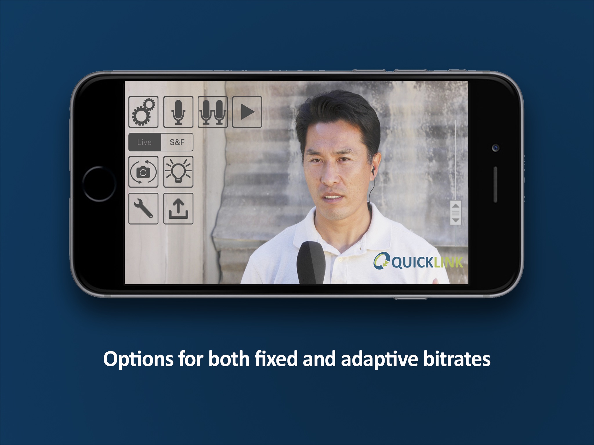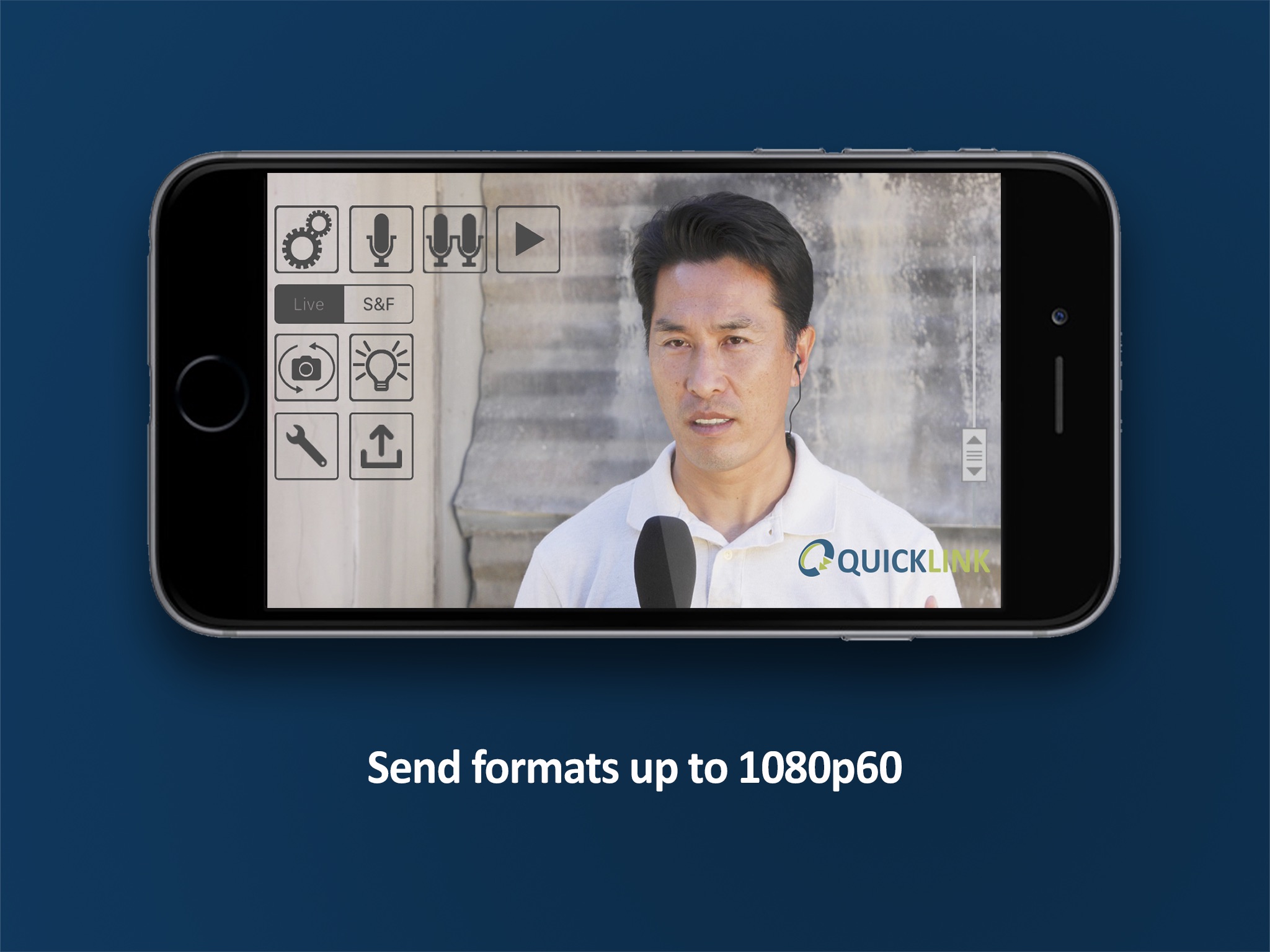 The Quicklink LNG app allows easy configuration for sending live video streams straight into your existing workflow and, of course, integrates seamlessly with the rest of the Quicklink range. Using your phones 3G/4G or Wi-Fi connection, the Quicklink LNG app is specifically designed for: