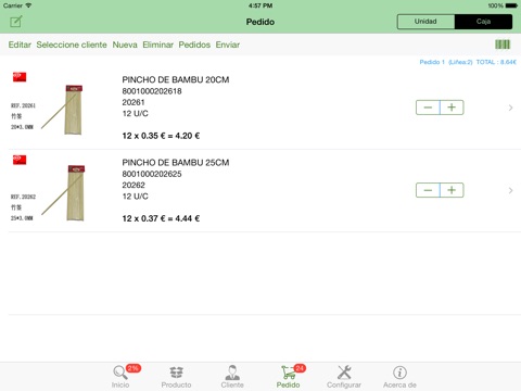 2. La imagen muestra una sola esquina superior derecha del número de pedido y los botones +/-