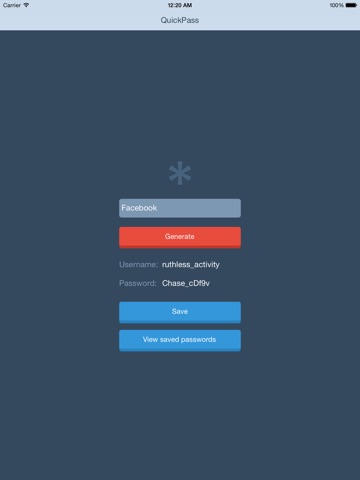 QuickPass is a secure password generator app with no access to the Internet and has nothing to do with the cloud.