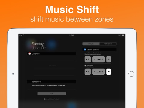 Quicksonos is an iOS today view widget which gives you quick access to your Sonos Zones controls, straight from your lockscreen.
