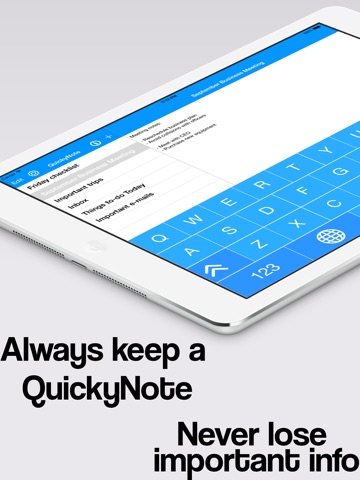Keep all your important notes safe with QuickyNote. Using the InstantSave feature, no need for extra steps to save all your important data, QuickyNote automatically saves your information for you "instantly".