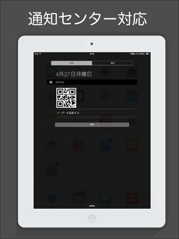 又、アプリ内、【作成&設定】内の【通知センターにQRコードを表示】をONにし、設定することで、通知センターへQRコードを表示することが可能です。