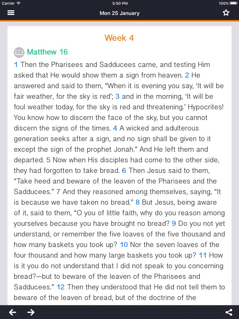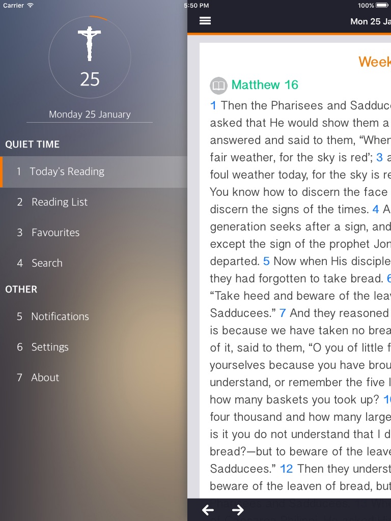 - Browse readings that you have missed, and read future readings by navigating to the list view
