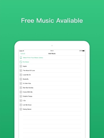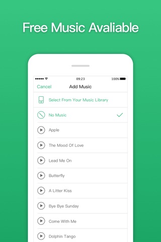 3.Create - add built-in music or music from your iTunes library to tell your story.