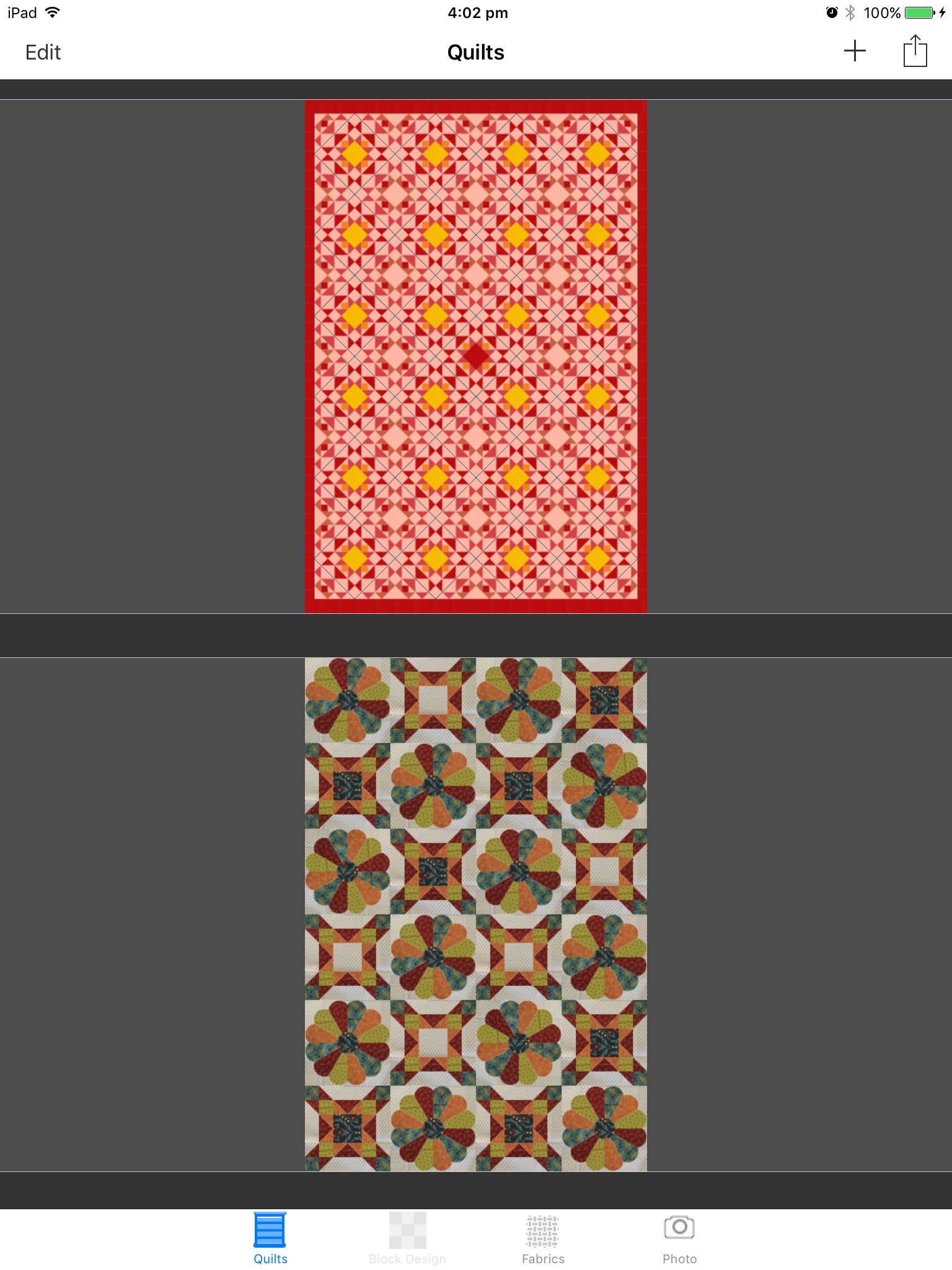 - Zoom in and out your quilt and block design while editing.