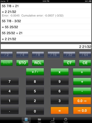 A fraction calculator that tracks errors that accumulate due to round off. These errors can cause problems when dealing with lots of small pieces used in quilts.