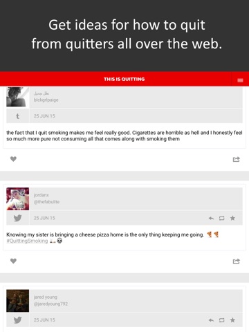 * Be inspired to keep your own quitting going with real life success stories.