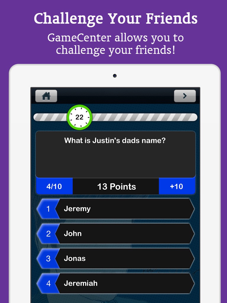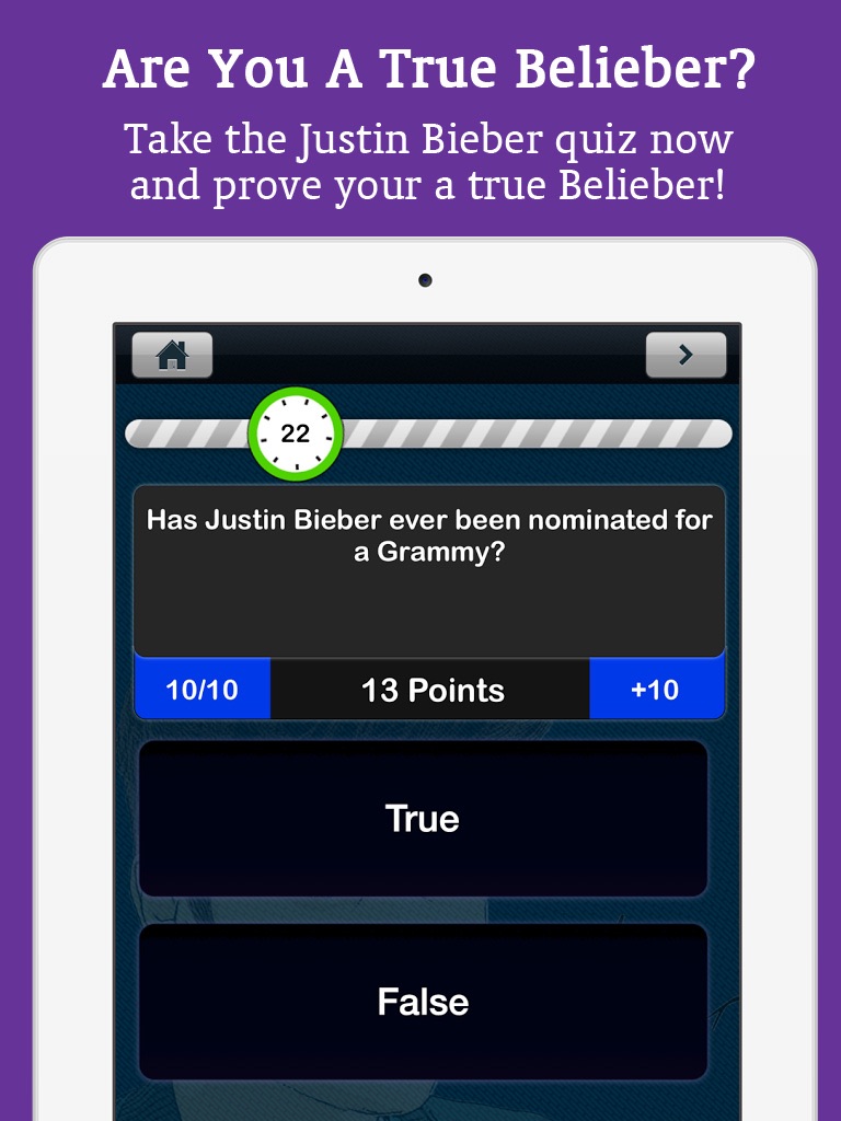 We present you with a fun, interactive, and feature rich quiz game. Our quiz about the Beibs, includes the following features: