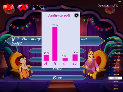 You will be presented a set of 15 questions and if you answer all of them correctly, you WIN the Quiz. You can take the help of 2 lifelines.