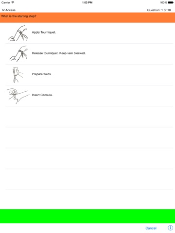 This quiz application contains one quiz to learn the sequence of IV cannulation.