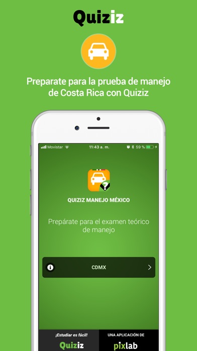 Quiziz Manejo es la herramienta ideal para repasar las disposiciones generales, normas, procedimientos y demás contenidos del Reglamento de Tránsito.