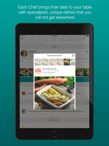 Because our chefs are dedicated to quality, they generally only cook small batches on the day of the week that they publish their menu for. This gives them the time they need to plan, shop for, and create amazing foods just for you and your unique palate. When you’re planning your meals for the week, simply look up the schedule and menu for your favorite chef (or chefs), and order your desired items based on who’s cooking the food you crave that week.