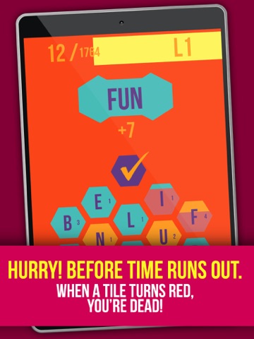 Create words and earn your best letter score. The more letters you use, the higher your word bonus. And as you level up you earn even more points!
