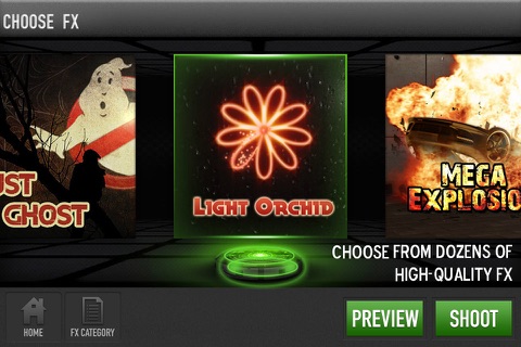 Select a scene like the "MISSILE," film a target and QUO MOVIE FX adds an explosive action sequence with BOMBS and HUGE explosions right into your movie! The action is not limited to Action FX – select effects from a range of categories: