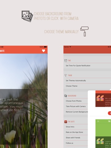 The Quote provides motivational and inspirational quote regularly to boost up your mind for a better day. Each quote in this app is hand picked. You can set time when you want to get a daily quote. This app contains carefully selected life quotes, inspirational quotes, motivational quotes, success quotes and many more.