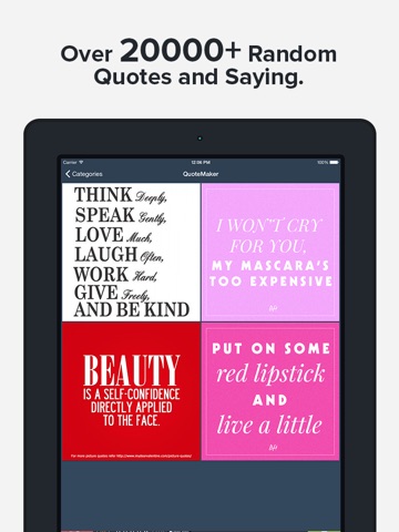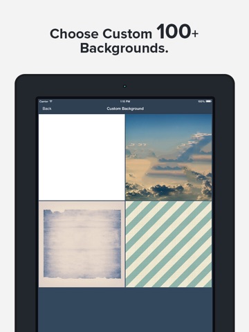 QuoteMaker allows you to create beautiful text pictures and photos and share it with your friends on social networks. It also allows your to write on top of your photos and add stickers,frames,filters and customs background. Its store contains lots of free backgrounds,fonts that you can download and use.