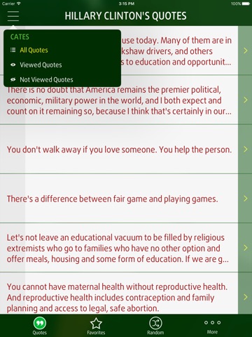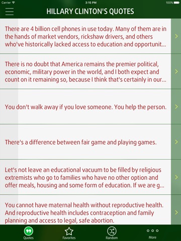 This free app offers hundreds of hand-picked publicly available quotes from Hillary Clinton. Get a new quote delivered to your phone automatically every day!