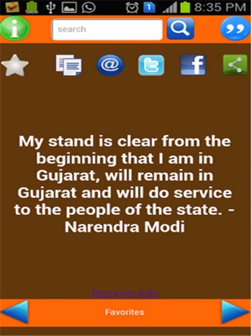 • Bookmarking of the favorite quotes of Modi is available in this quote app to refer it in future.