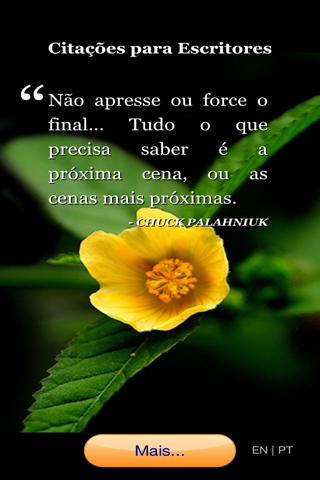 Quotes4Writers inclui mais de 100 frases inspiradoras, escritas de escritores para escritores. Muitas vezes é uma óptima ajuda para desbloquear a combater uma folha em branco.