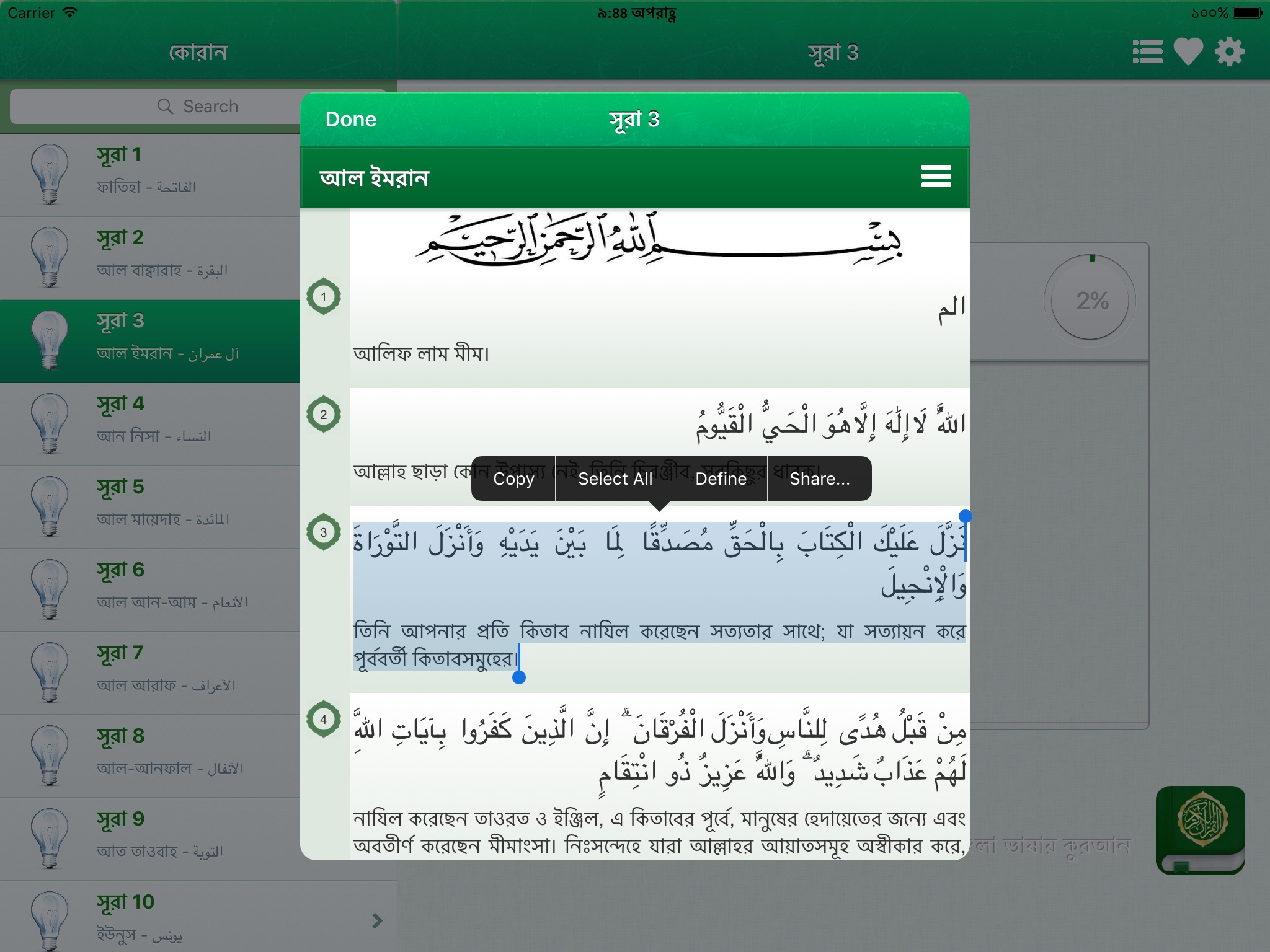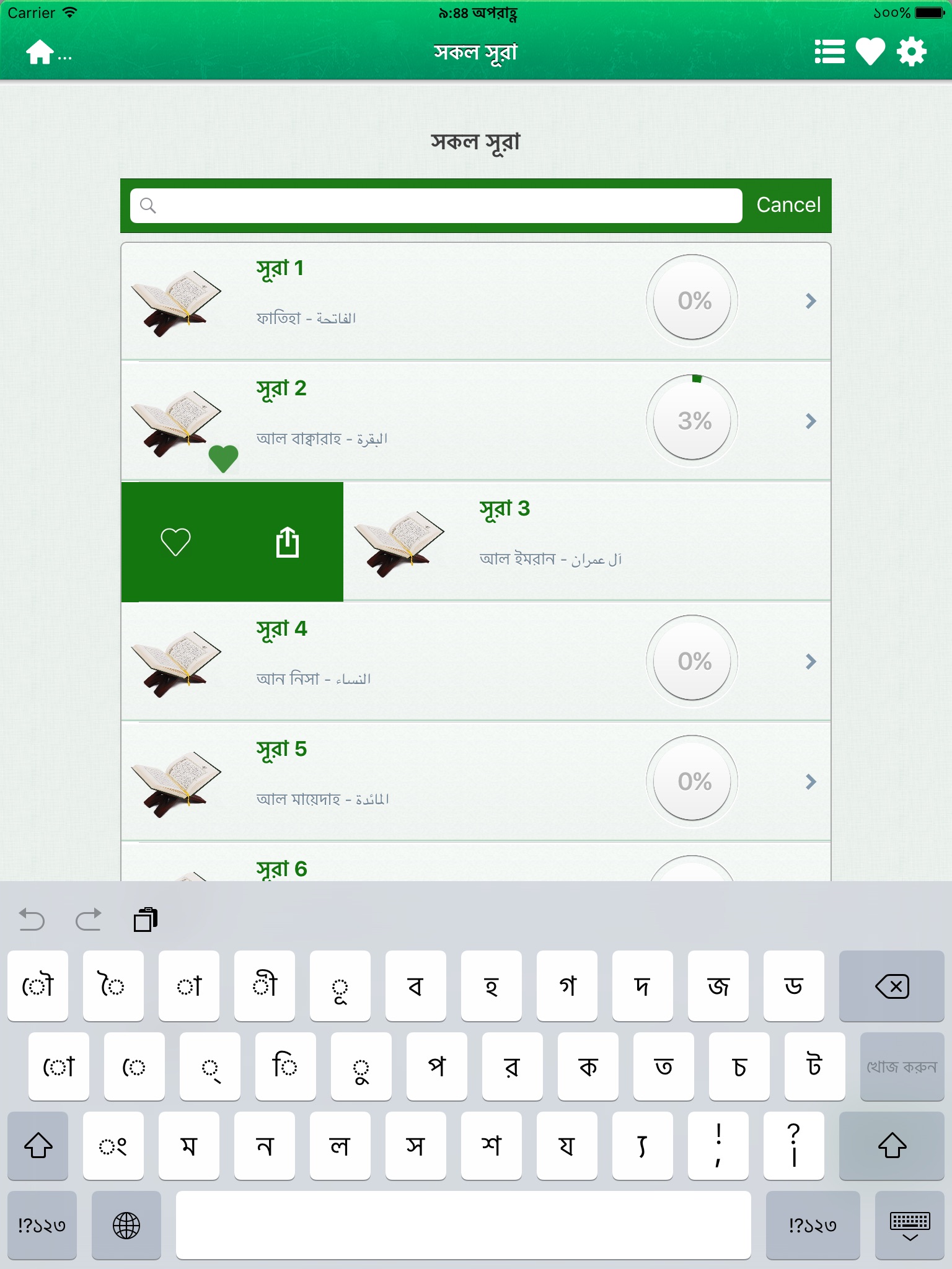 - 114 suras of the Quran to read in Bengali and in Arabic