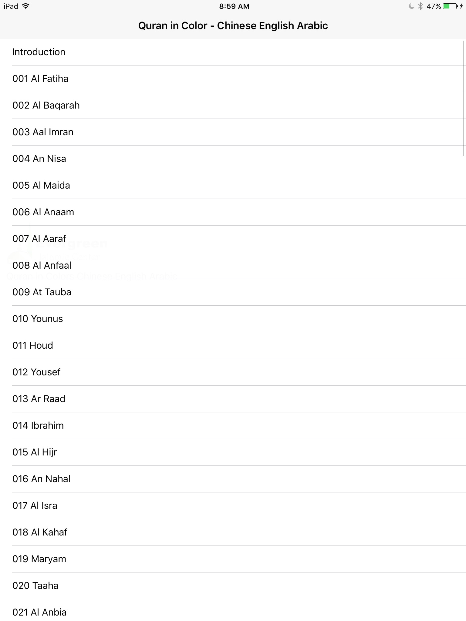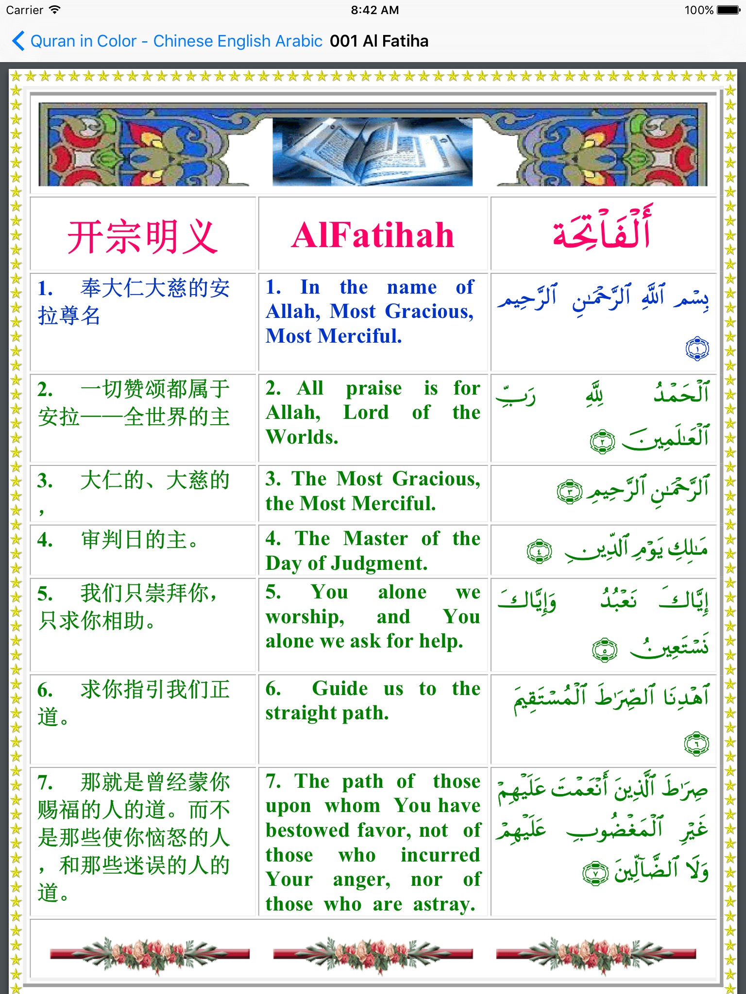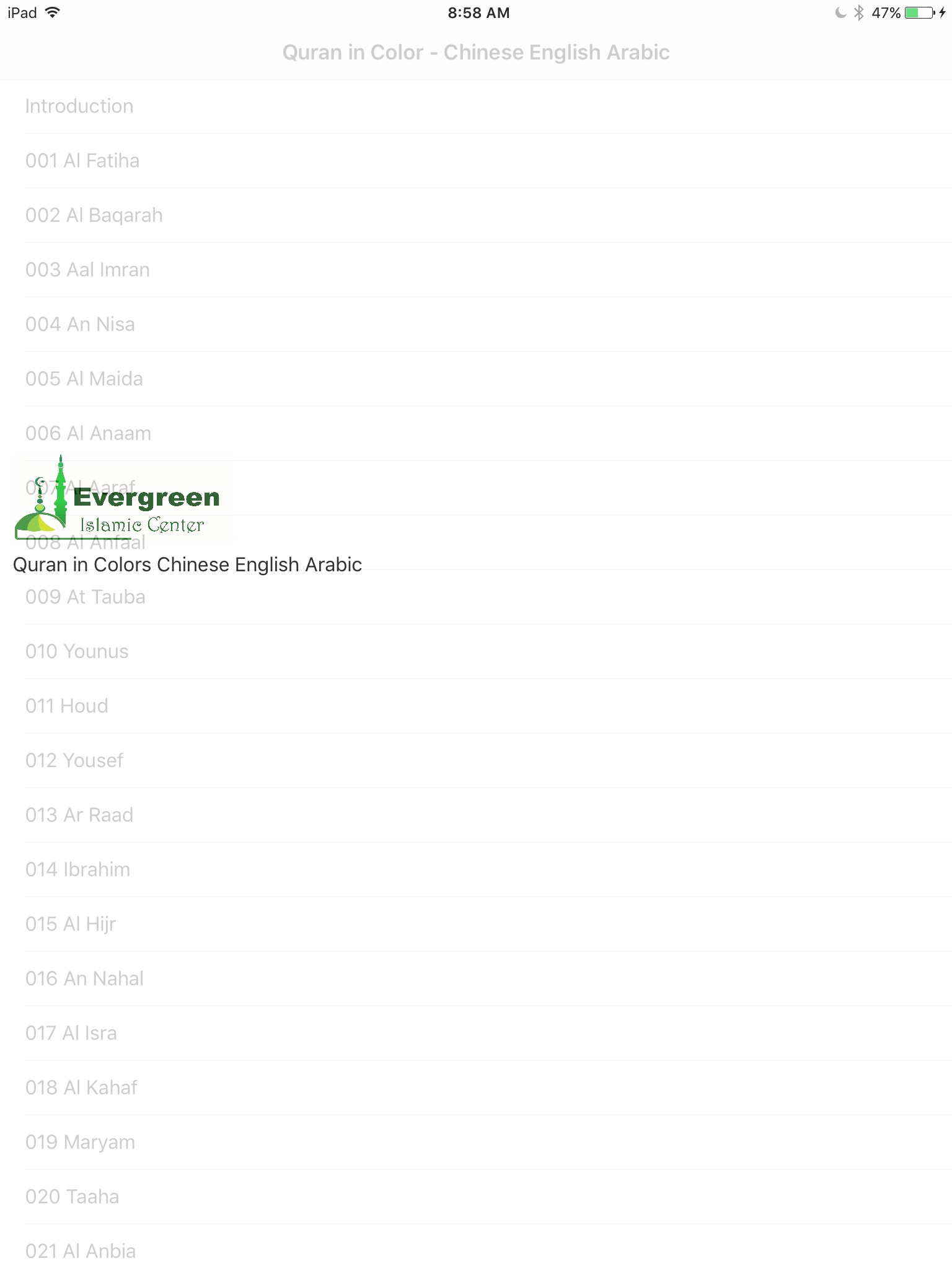 • Complete Trilingual Quran in Arabic, English and Chinese.