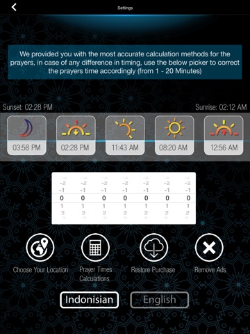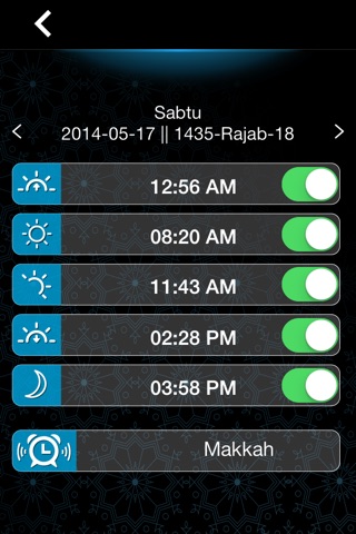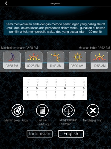 - Notifikasi alarm untuk setiap doa, dengan kemampuan untuk menyesuaikan kali Pilih nada pemberitahuan.