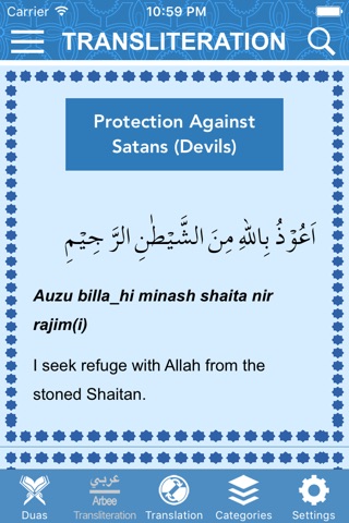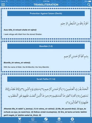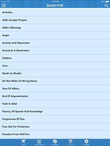 This app contains ALL authentic Duas (prayers or supplications) from the Quran