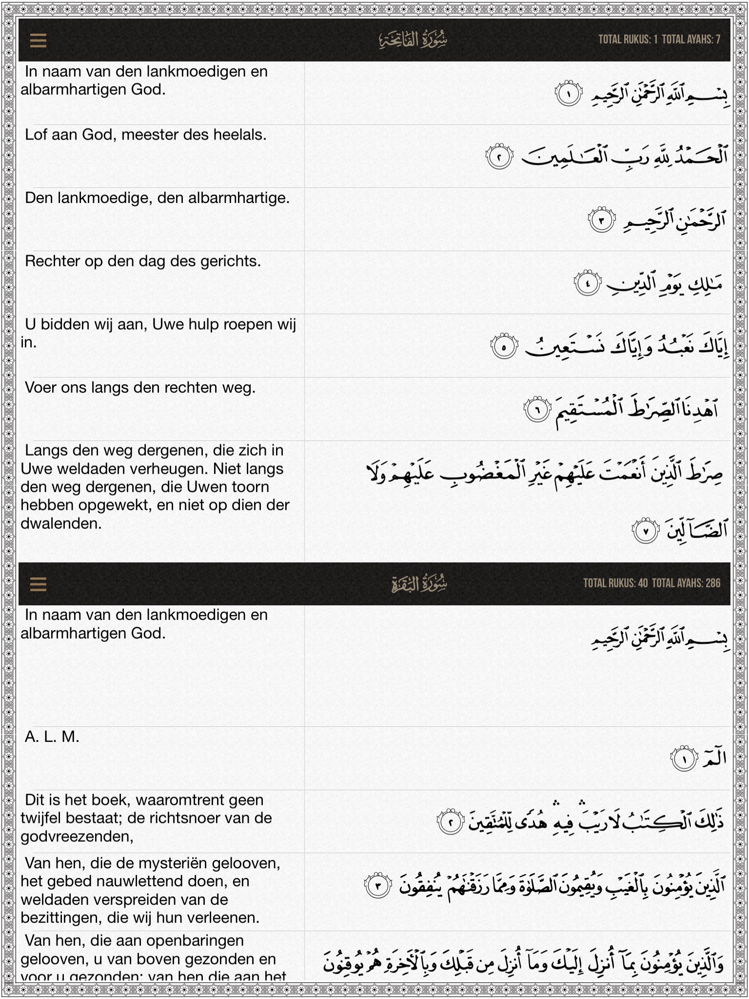 • Quran-Dutch the ultimate translation of Quran in Dutch language and audio recitation from trusted sources. One application after which you do not need to download any other Quran App for Dutch translation.