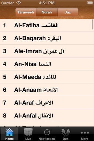 Features Sura index, Juz index and tarawih index.