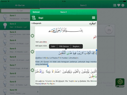 - Bookmark otomatis untuk setiap surah