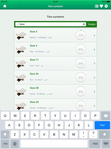 - 114 suras of the Quran to read in Turkish, Arabic and Transliteration